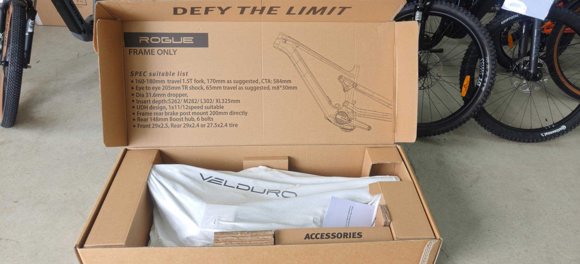 Build your dream EMTB with Velduro. Using flip chips the Rogue's modular frame can adapt to your needs and riding style. Swap the travel, tweak geometry or switch wheel sizes and customise your ride to create your Dream Machine. In Standard Mode (170mm fork / 165mm rear with MX wheels), it's a trail-taming beast. Switch to All-Mountain Mode (160mm front/rear with MX wheels) for flowy precision, or unleash enduro Mode (180mm front / 172mm rear with 29inch rear wheel) to dominate descents. The Rogue is powered by the DJI Avinox drive system and 800wh battery.